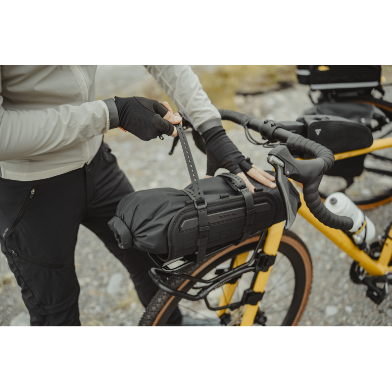A compact and easy-to-mount strap-on cargo bag. Includes a weatherproof bag with up to 12 L capacity. Compatible with Topeak TetraRack M1/GR1, BarRack and most front and rear mounted racks. Made from engineering grade polymer, weatherproof 600D Polyethylene fabric with taped seams and comes complete with 2 x 80cm TPE straps to attach it to the rack.